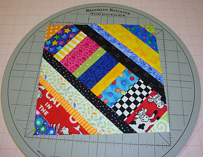 Another great way to use up those scraps and to get a different effect to the stringy block quilts. Fabric Therapy shows what she does.